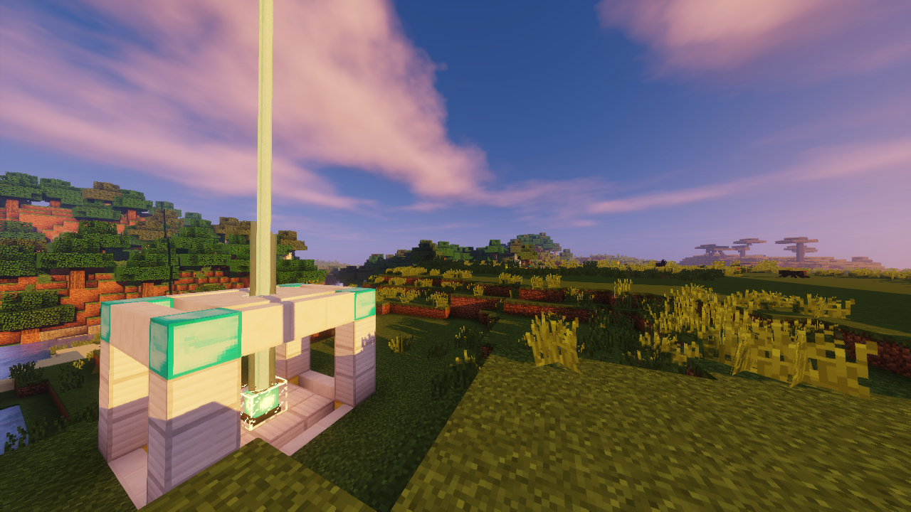 The entrance of the planet, a 5x5x5 structure, the beacon tower in the center of the structure can be connected to the spaceship and Environment Control System.