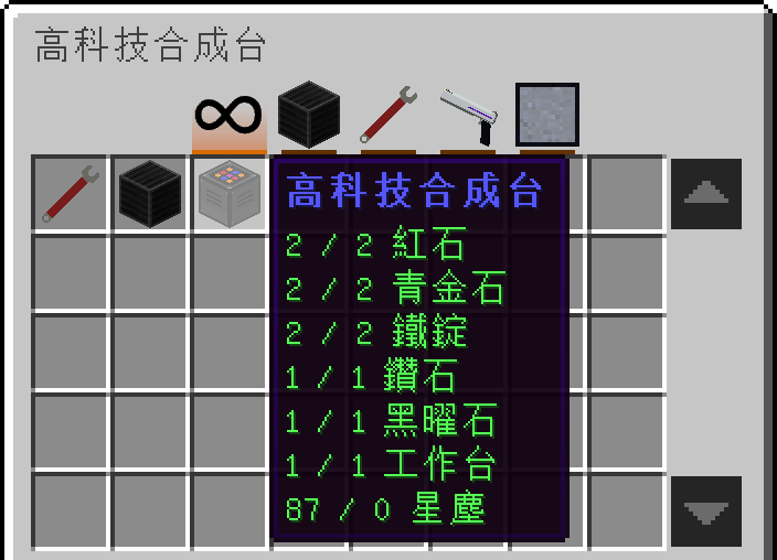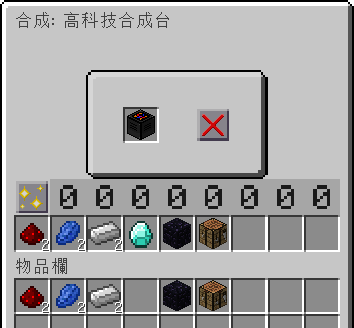 若材料不足將會顯示紅色叉叉按鈕,點擊紅色叉叉按鈕將會返回主要介面: